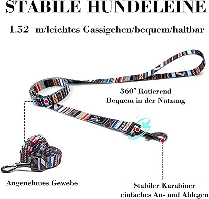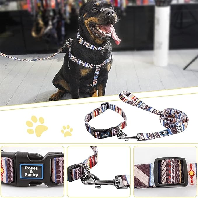 Roses&Poetry Dog Collar and Leash for Small,Adjustable Durable Blue 5ft Puppy Leash Collar for Dog Training Lead(Stripe-L)