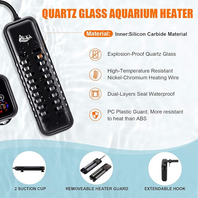 AQQA Aquarium Heater 800W for 80-220 Gallon Fish Tank Heater Submersible Betta Fish Heater for Aquarium Thermostat Heater for Freshwater and Saltwater (800W for 80-220 Gal)
