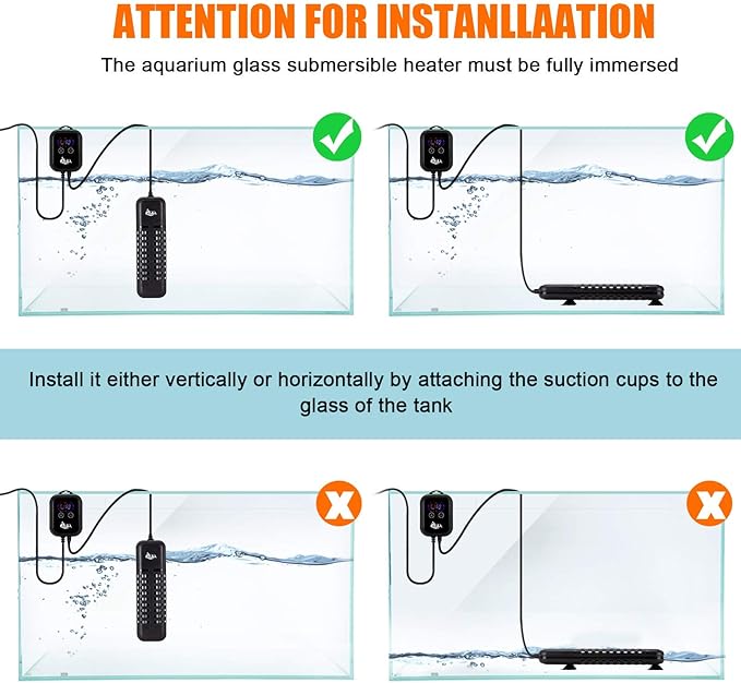 AQQA Aquarium Heater 500W for 66-135 Gallon Fish Tank Heater Quartz Glass Submersible Betta Fish Heater for Aquarium Thermostat Heater for Freshwater and Saltwater (500W for 66-135 Gal)