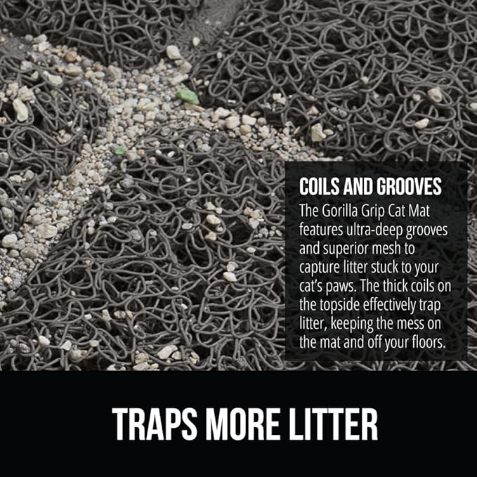 GORILLA GRIP Cat Litter Box Mat, 40x28, Water Resistant, US Designed Kitty Litter Trapping Mats, Easy to Clean, Scatter Control, Less Mess and Clean Floors, Kitten Supplies for Indoor Cats, Dark Gray