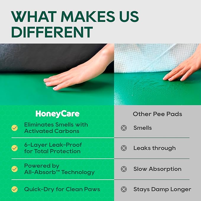 About This NEW Material Absorbing Pet Pads Urine & Odor — HONEY CARE & All-Absorb Pets carbon-activated linner puppy pads... Read more