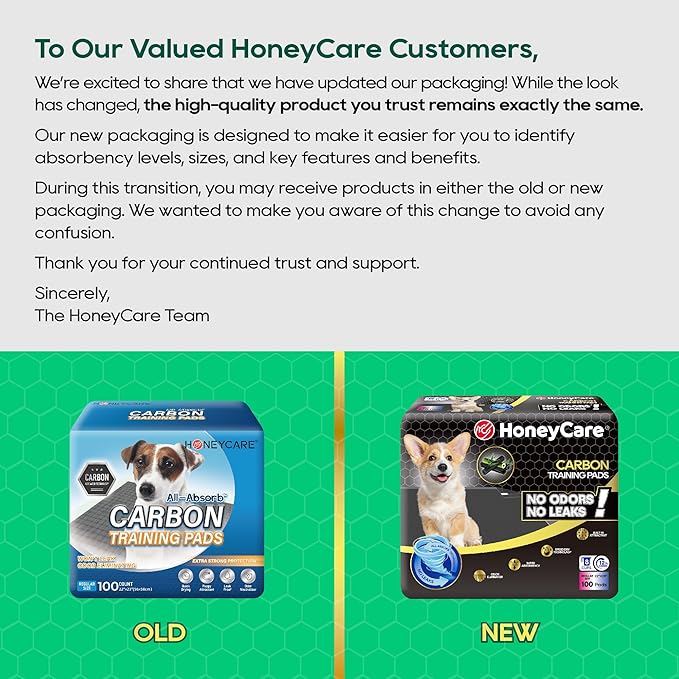 HONEY CARE All-Absorb Puppy Training Pads | Doggie Potty Pads Absorb Eliminating Urine Odor, Ultra Charcoal Dog Pee Pad (Carbon, L 22x23 inch, 100ct)
