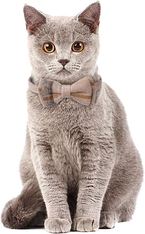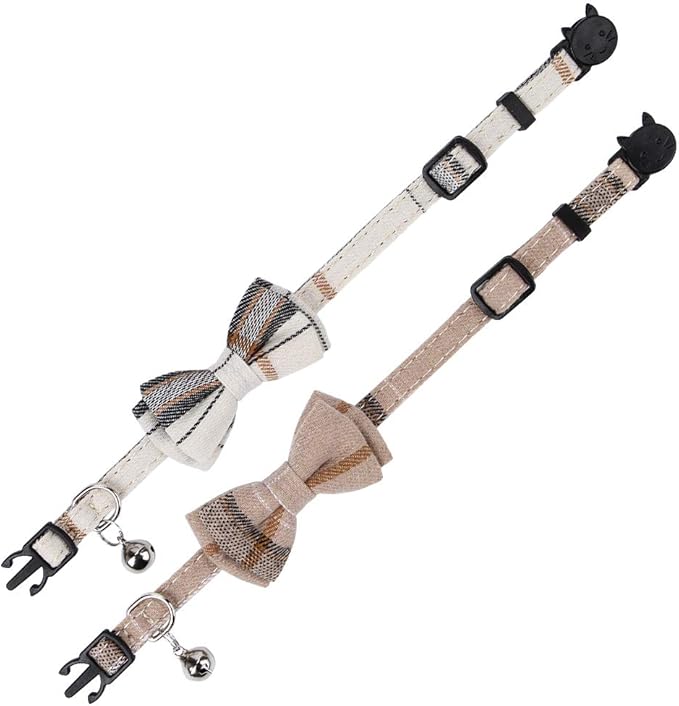 Faleela Breakaway Cat Collar with Bells - 2 Pack Cat Collar with Bells, Cat Collars with Bandana, Accessories for Pet Collars, Adjustable for Cats and Small Dogs (Beige+Brown)
