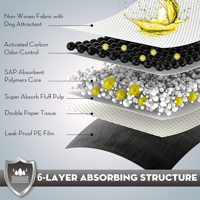 CROCI Charcoal Puppy Pads with Adhesive Tabs, 28x34in Extra Large Pee Pads for Dogs, Odor-Control Super Absorbent Quick-Dry Leak-Proof, Disposable (40 Counts)