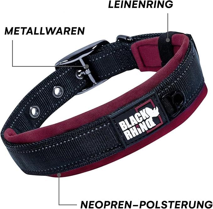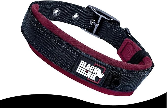 Black Rhino Dog Collars for Medium Dogs - Adjustable Reflective Heavy Duty Dog Collar with Ultra-Soft Neoprene Padding - Weatherproof, Durable, and Comfortable for Active Dogs - Burgundy and Black