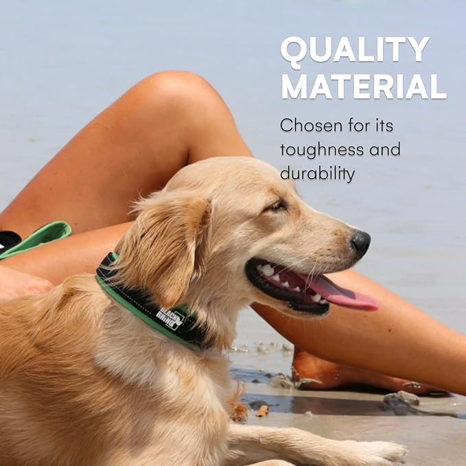 Black Rhino Dog Collars for Small Dogs - Adjustable Reflective Heavy Duty Dog Collar with Ultra-Soft Neoprene Padding - Weatherproof, Durable, and Comfortable for Active Dogs - Green and Black