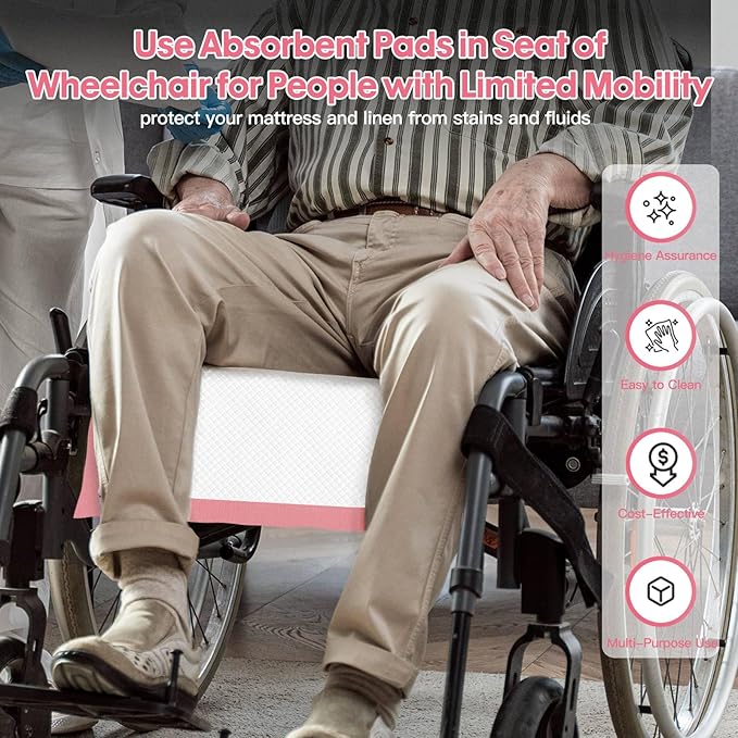 BinetGo Pink Disposable Pee Pads for Dogs, 40 Count 24” x 24” Large Wee Wee Pads for Urine, Extra Absorbent Unscented Puppy Pads, Pet Training Pads for Dogs, Pink Doggy Pee Pads for Indoors