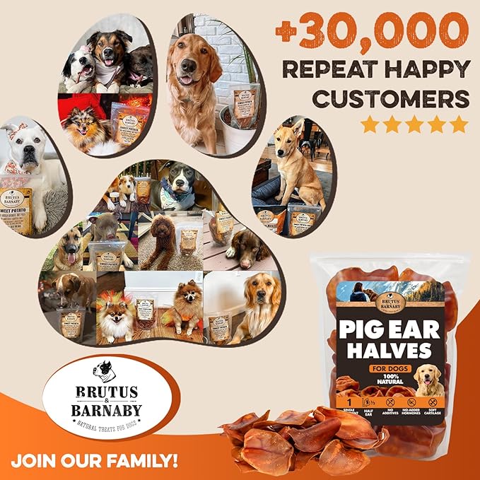 BRUTUS & BARNABY Pig Ear Halves for Dogs, 40 Ct. – All-Natural Single Ingredient Dog Chews, Slow Cooked & Fully Digestible Rawhide Alternative