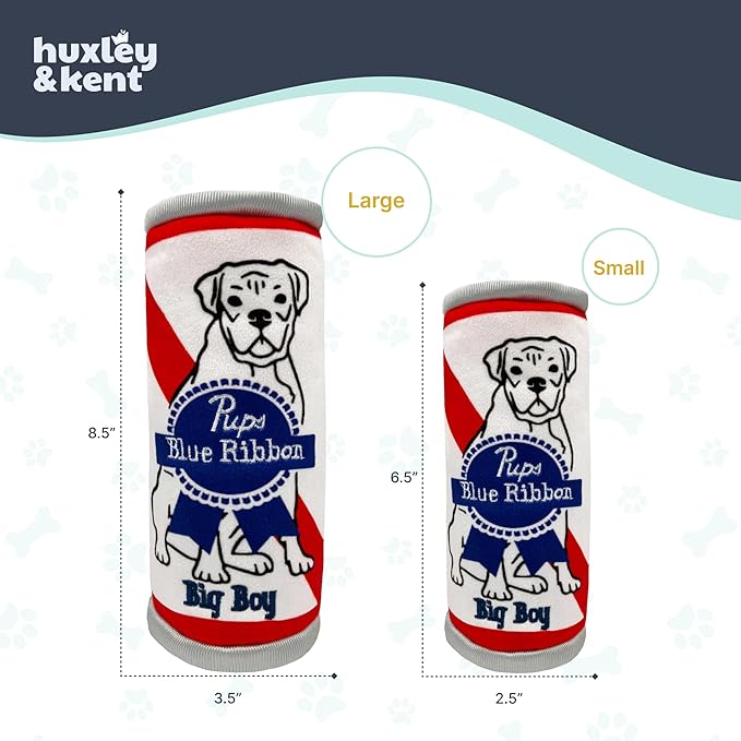 Huxley & Kent Funny Dog Toy w/Squeaker – Power Plush Squeaky Dog Toys for Small, Medium & Large Dogs – Soft Stuffed Animal for Indoor Play & Fetch - Pups Blue Ribbon, Small