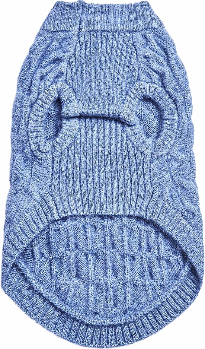 Blueberry Pet Classic Fuzzy Textured Knit Pullover Crew-Neck Dog Sweater in Heather Blue, Back Length 20", Pack of 1 Clothes for Dogs