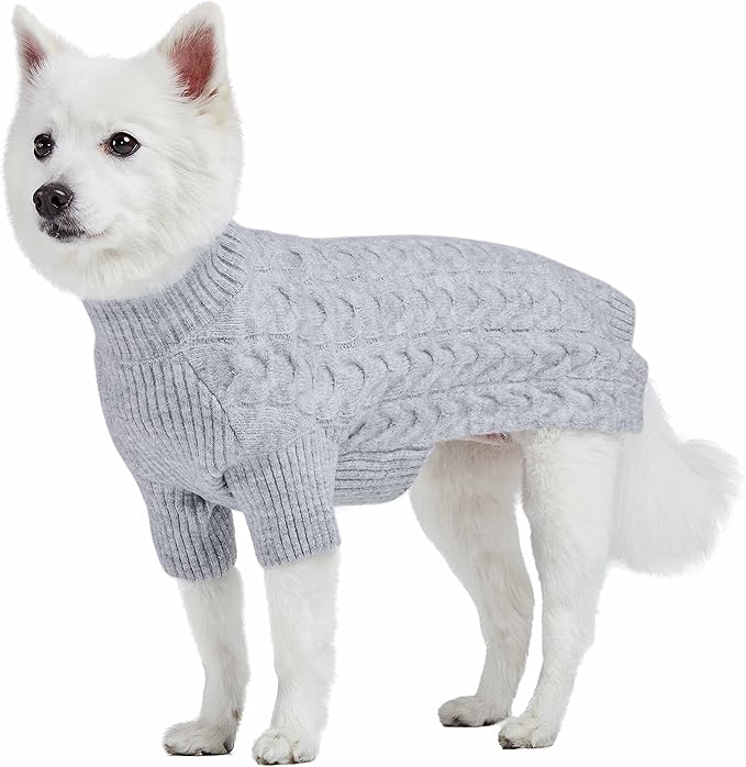 Blueberry Pet Classic Fuzzy Textured Knit Pullover Turtle-Neck Dog Sweater in Heather Grey, Back Length 16", Pack of 1 Clothes for Dogs