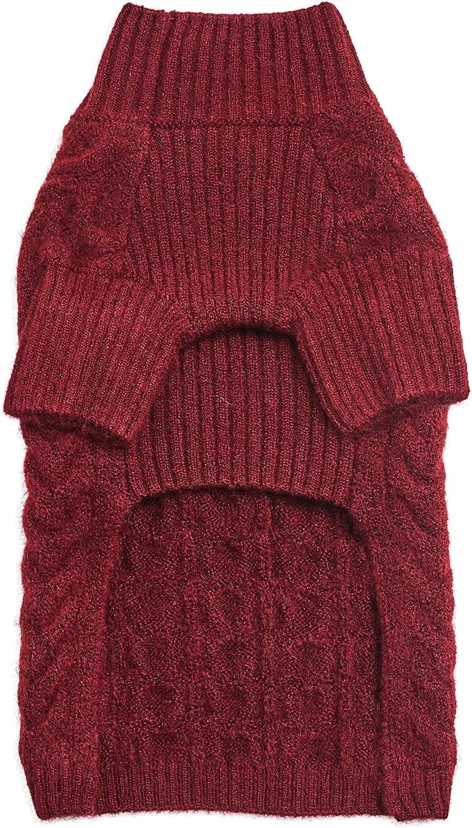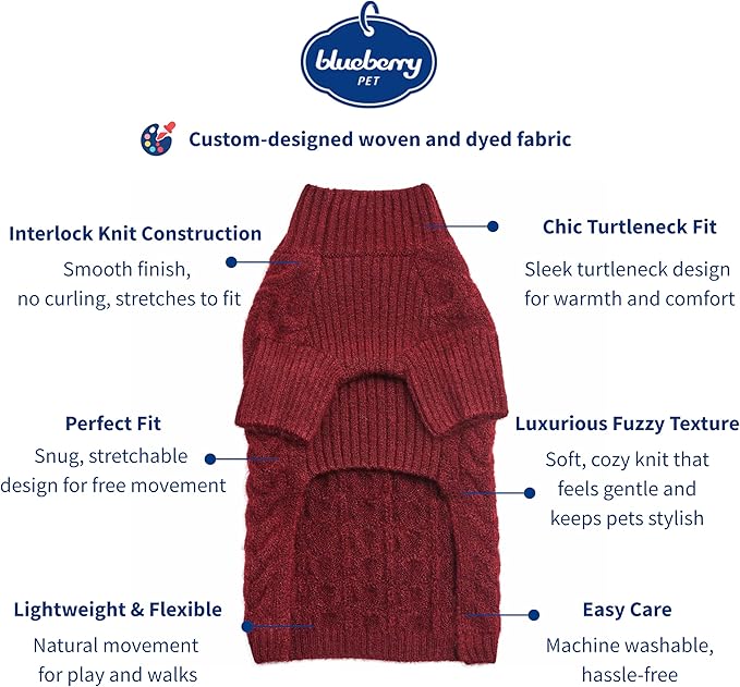 Blueberry Pet Classic Fuzzy Textured Knit Pullover Turtle-Neck Dog Sweater, Burgundy Red Christmas Sweater for Small Puppy, Back Length 12", Cozy Pet Clothes & Pajamas, Girl's Dog