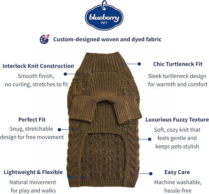 Blueberry Pet Classic Fuzzy Textured Knit Pullover Turtle-Neck Dog Sweater in Dark Olive, Back Length 16", Pack of 1 Clothes for Dogs