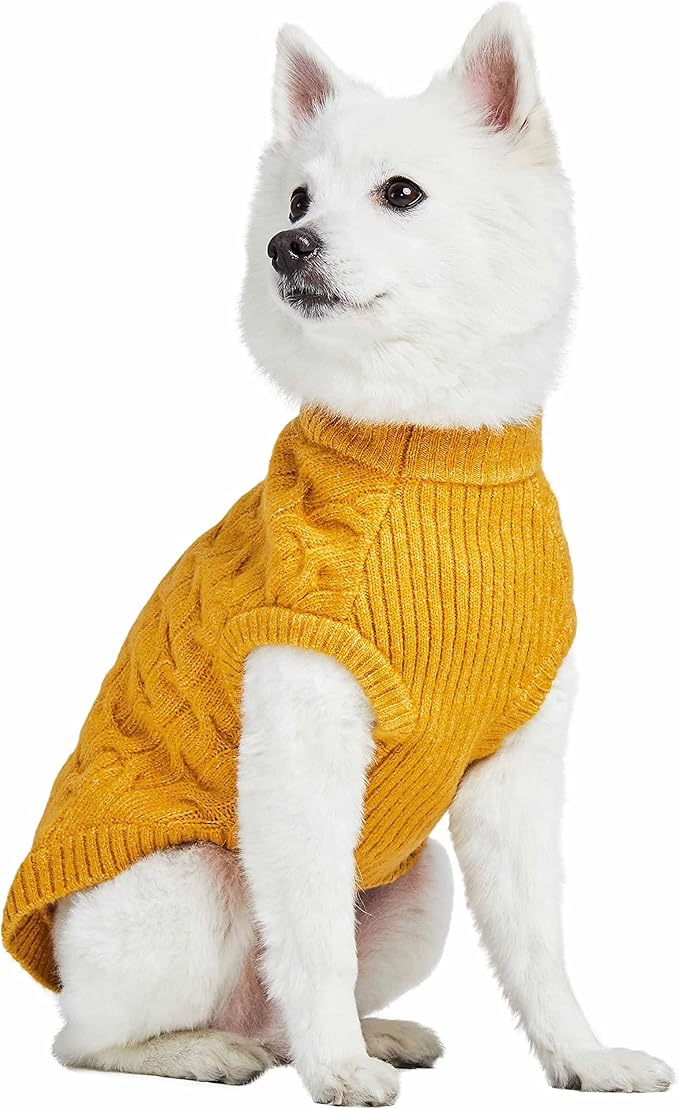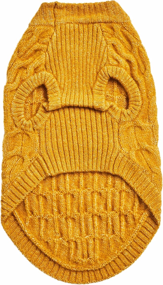 Blueberry Pet Classic Knit Dog Sweater, 10" Crew-Neck Mustard Yellow, Back Length [尺寸], Boy Dog Outfit, Cozy Fall & Winter Style