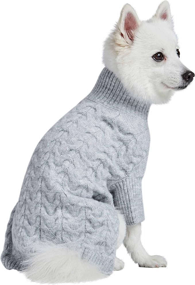 Blueberry Pet Classic Fuzzy Textured Knit Pullover Turtle-Neck Dog Sweater in Heather Grey, Back Length 18", Pack of 1 Clothes for Dogs