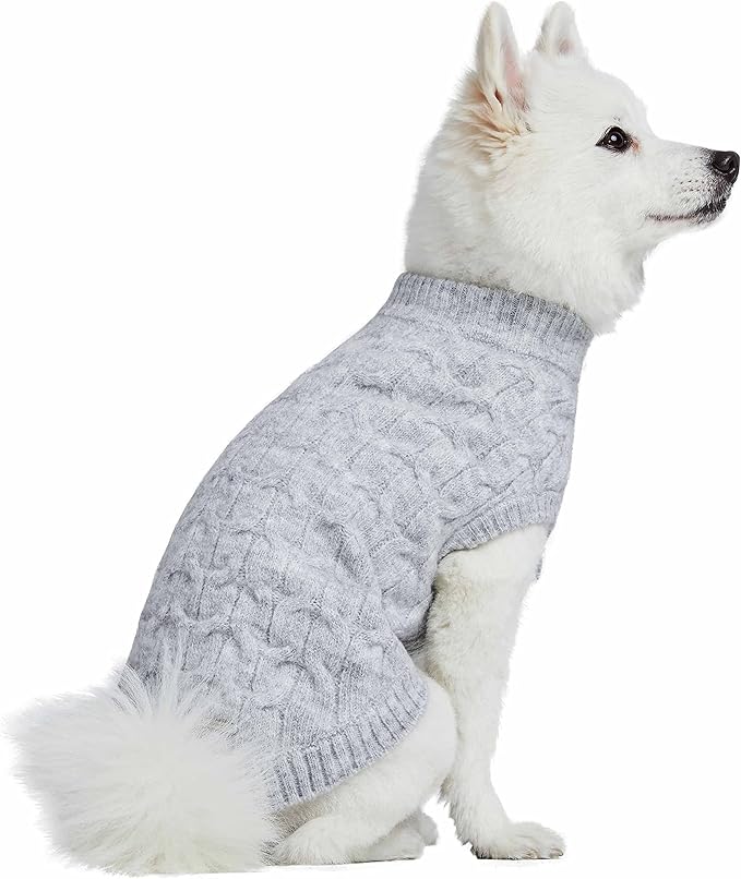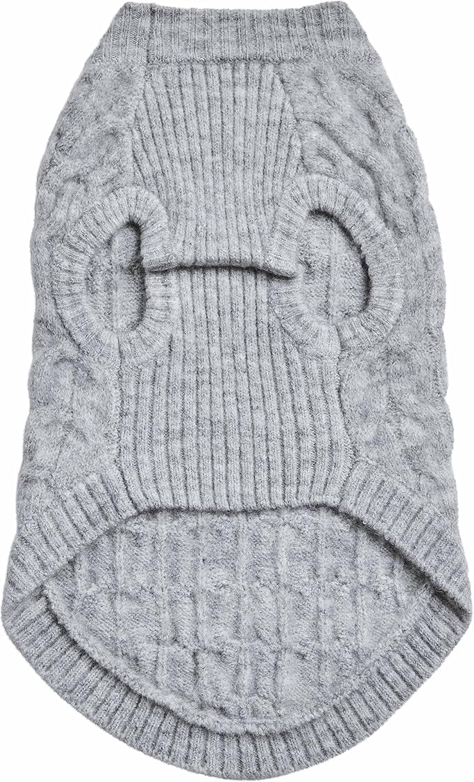 Blueberry Pet Classic Fuzzy Textured Knit Pullover Crew-Neck Dog Sweater in Heather Grey, Back Length 14", Pack of 1 Clothes for Dogs