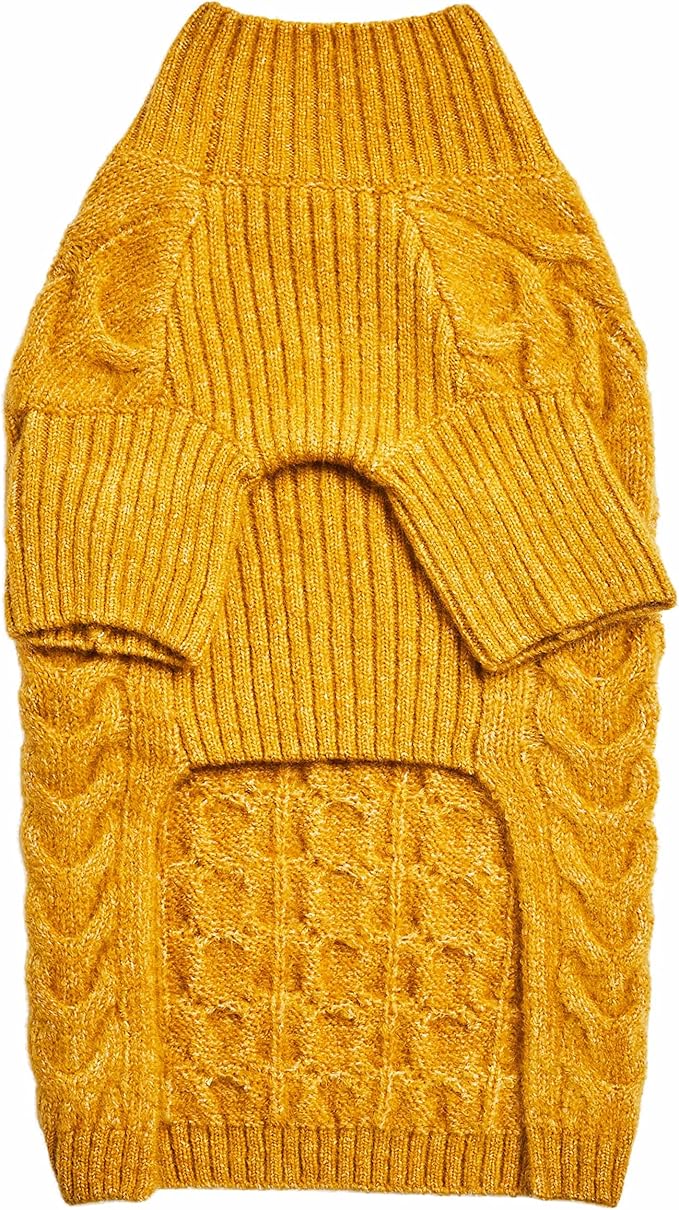 Blueberry Pet Classic Fuzzy Textured Knit Pullover Turtle-Neck Dog Sweater in Mustard Yellow, Back Length 18", Pack of 1 Clothes for Dogs