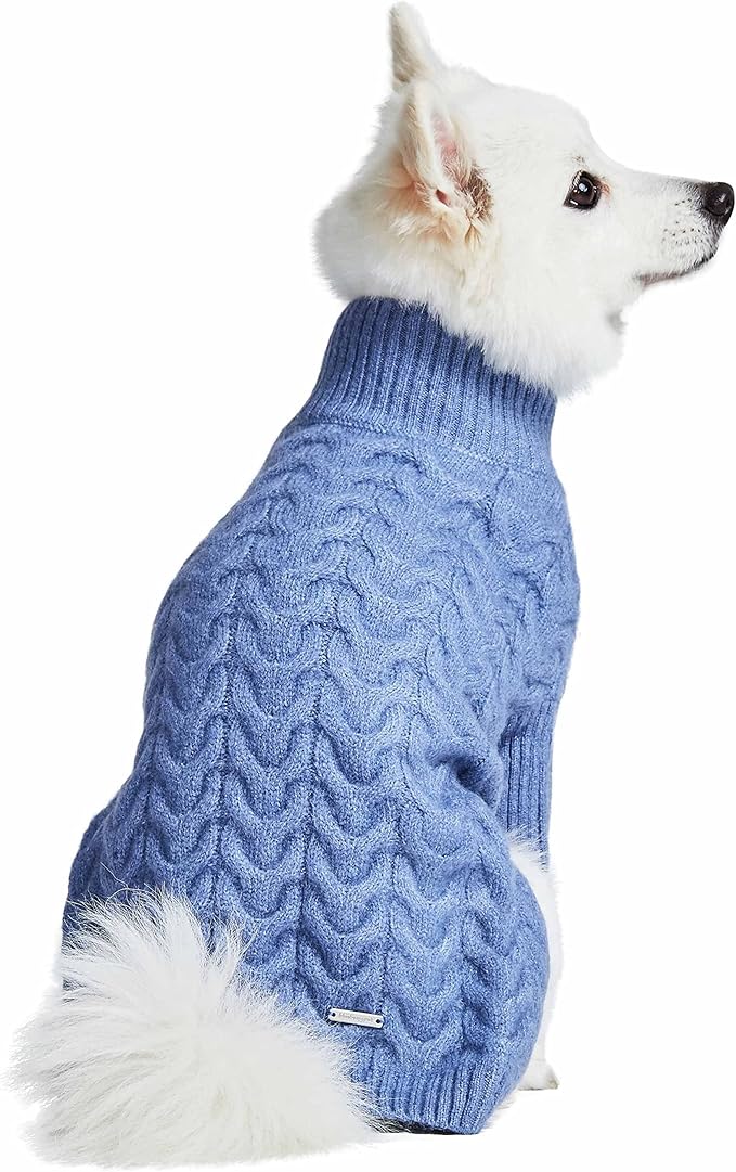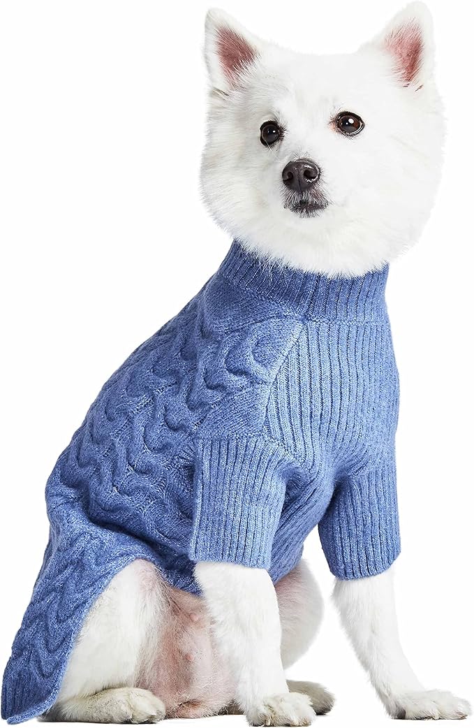 Blueberry Pet Classic Fuzzy Textured Knit Pullover Turtle-Neck Dog Sweater in Heather Blue, Back Length 14", Pack of 1 Clothes for Dogs