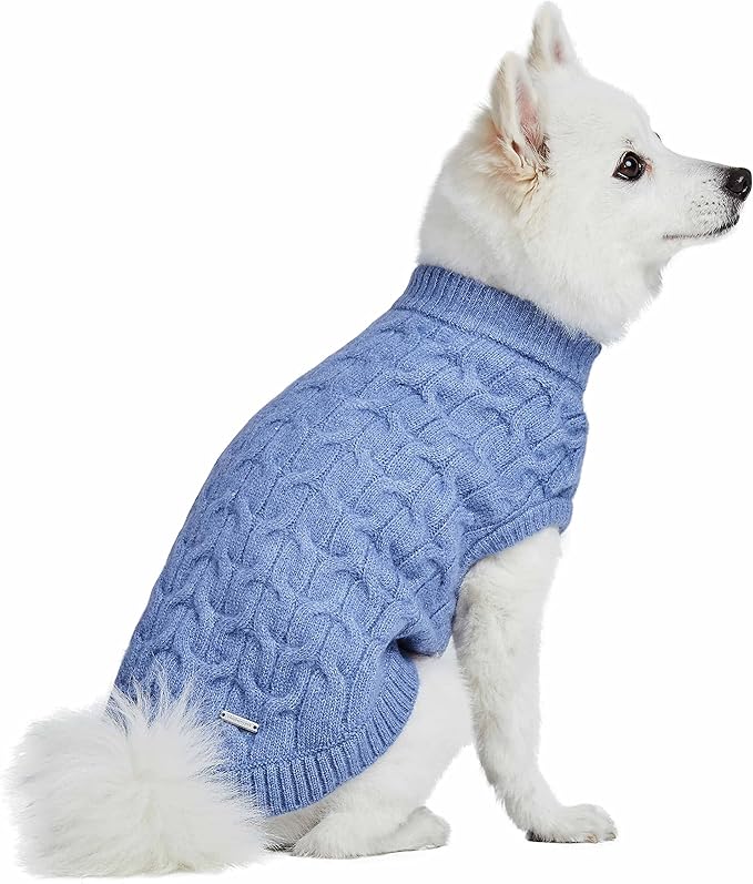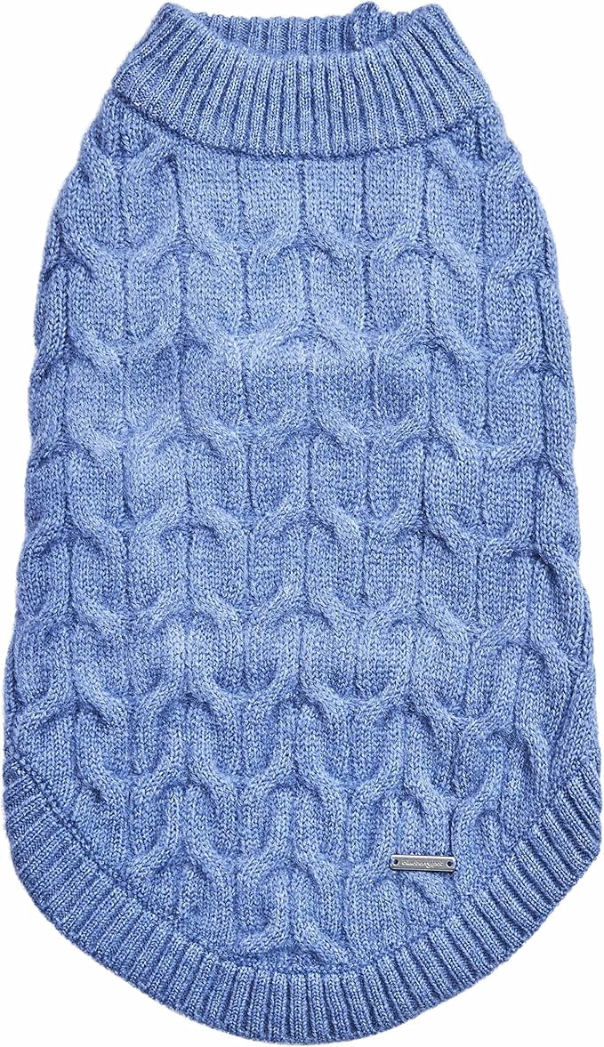 Blueberry Pet Classic Fuzzy Textured Knit Pullover Crew-Neck Dog Sweater in Heather Blue, Back Length 22", Pack of 1 Clothes for Dogs