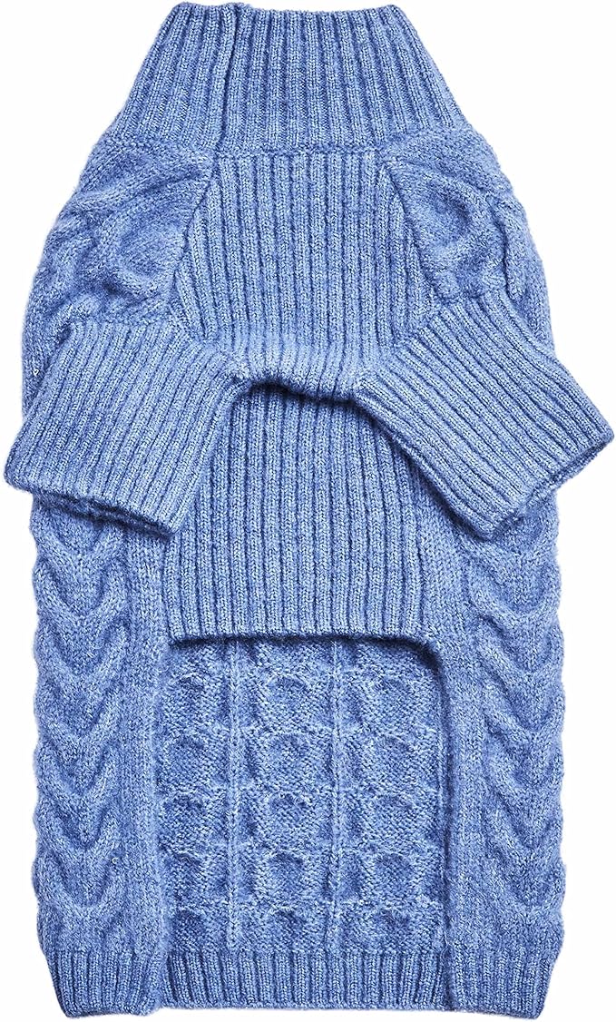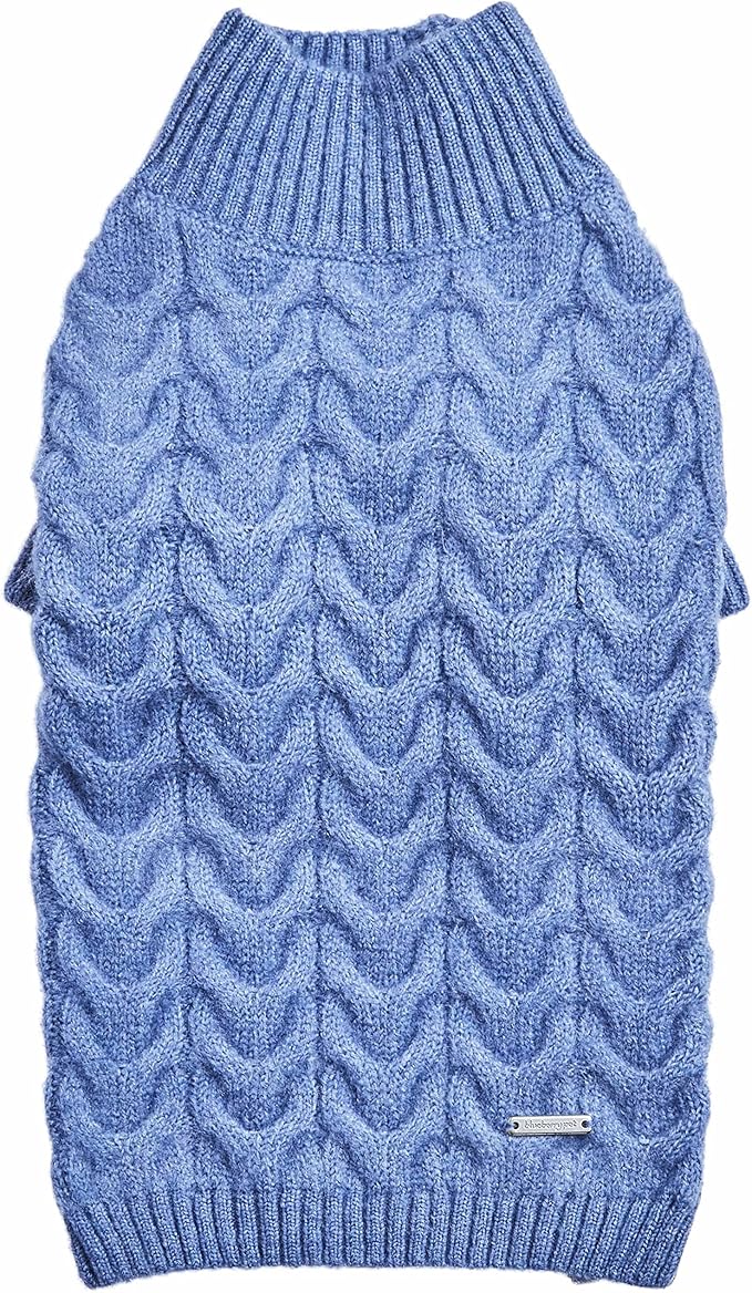 Blueberry Pet Classic Fuzzy Textured Knit Pullover Turtle-Neck Dog Sweater in Heather Blue, Back Length 20", Pack of 1 Clothes for Dogs