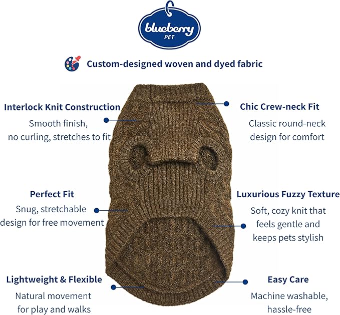 Blueberry Pet Classic Fuzzy Textured Knit Pullover Crew-Neck Dog Sweater in Dark Olive, Back Length 22", Pack of 1 Clothes for Dogs