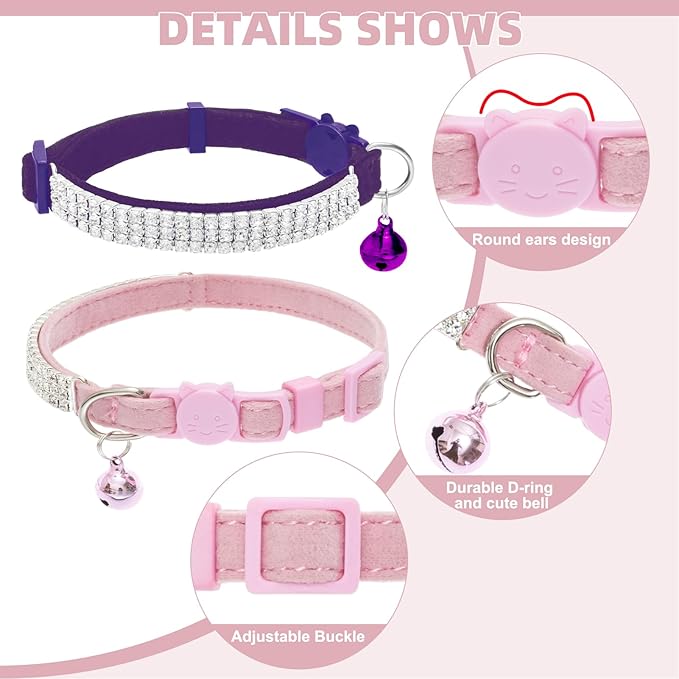• Sparkly Diamante: We adopt special excellent workmanship to equip the shiny rhinestone decoration for these cat collars, that will make your furry baby more adorable and eye-catching. It is the best choice for your holiday gifts.