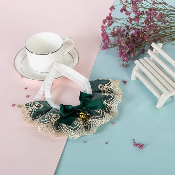 2PCS Dog Cat Collar with Bell Bow Lace Pet Bib Cute Scarfs Necklace Neck Strap for Pet Costume Supplies Dark Green
