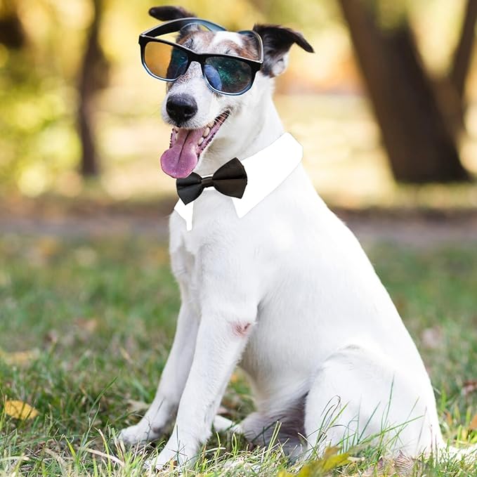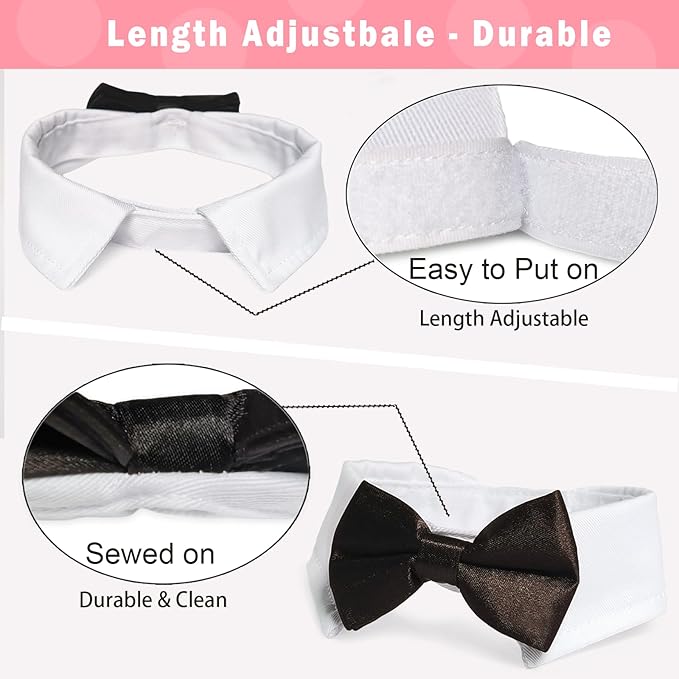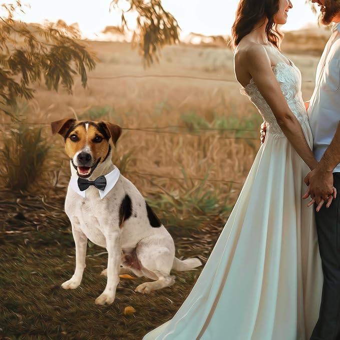 Dog Bow Tie, KOOLMOX Pet Bowtie Collar Black, Adjustable White Pet Tuxedo Collar with Black Dog Neck Bow Tie for Medium Large Boy Dogs Wedding Formal Tuxedo Suit Tux Outfits Birthday Costumes