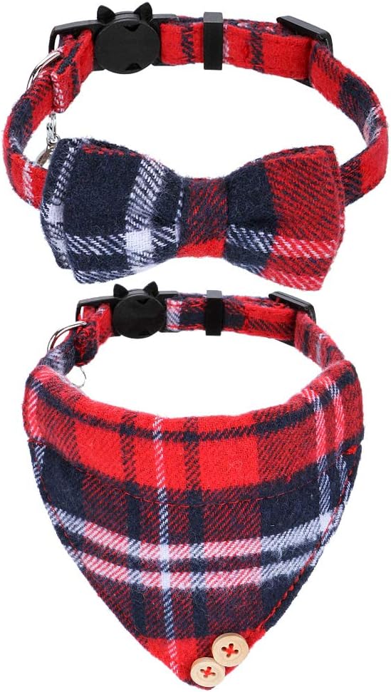 Faleela Breakaway Cat Collar with Bells - 2 Pack Cat Collar with Bells, Cat Collars with Bandana, Accessories for Pet Collars, Adjustable for Cats and Small Dogs
