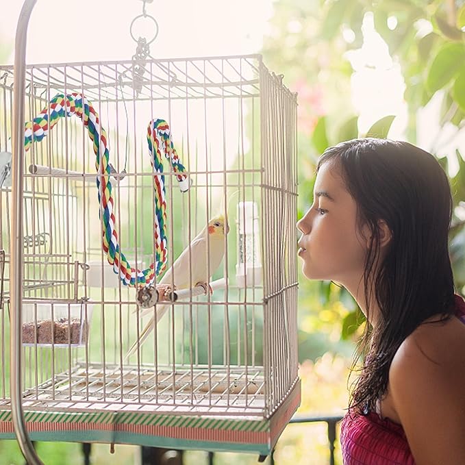 Bird Rope Perches for Parrots, Cockatiels, Parakeets, Budgie Cages Comfy Birds Colorful Rope Toy (41inch Metal nut)