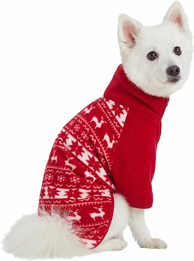 Blueberry Pet Dog Christmas Sweater - Warm & Soft Ugly Reindeer & Snowflake Fleece Jacket, Back Length 18" - Award-Winning Dog Sweater, America's Best Petcare Brands 2022 & 2021