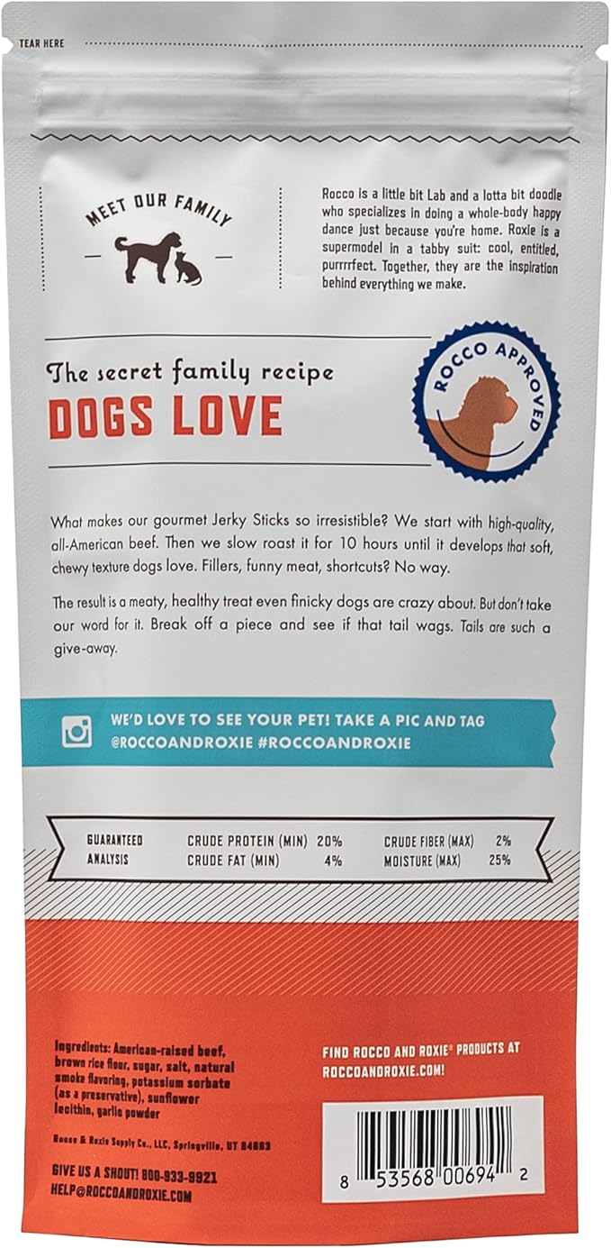 Rocco & Roxie Jerky Dog Treats - Slow Roasted Beef Sticks for All Breed Sizes - 170g Bag