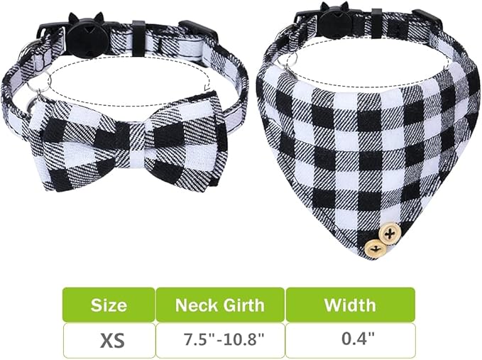 Faleela Cat Collar Bandana Bells Set - 2 Pack Set Cat Collar Breakaway with Cute Bow Tie and Bell, Adjustable from 7.8-10.5 Inch, Soft and Comfortable for Kitty and Some Puppies