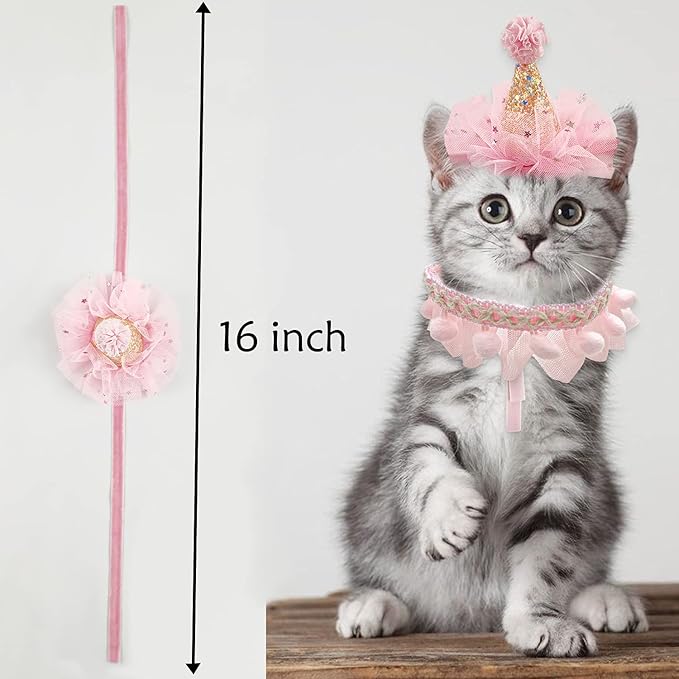 Birthday Hat Scarf Set for Pet Puppy Cat, Cute Lace Bandana Bib Scarf Crown Hat Princess Costume for Cats Small Dogs,Pink Outfit for Birthday Party