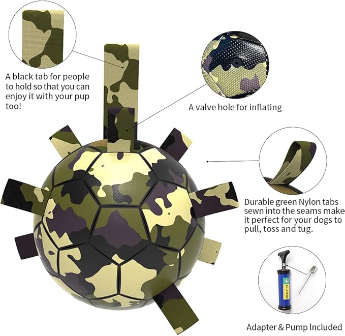 QDAN Dog Toys Soccer Ball, Interactive Toys for Tug of War, Dog Water Toy, Durable Dog Balls for Medium Large Dogs, Camouflage(8 inch)