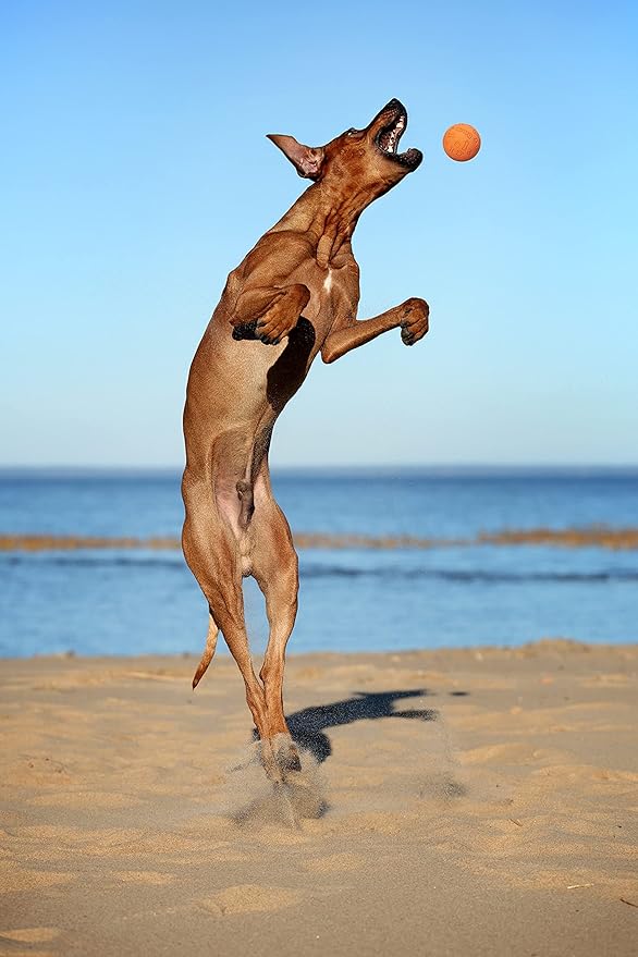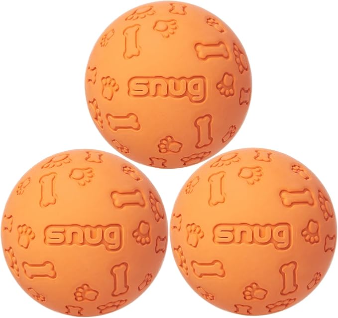 Snug Rubber Dog Balls for Small and Medium Dogs - Tennis Ball Size - Virtually Indestructible (3 Pack - Orange)