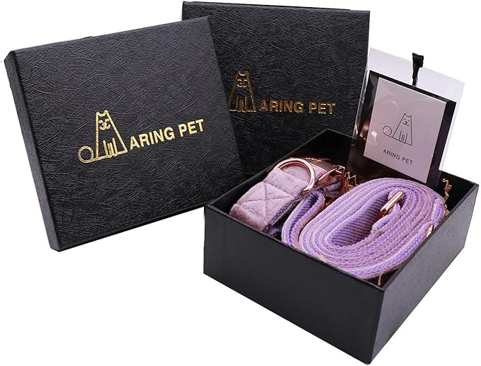 ARING PET Velvet Dog Collar and Leash Set, Soft Dog Collar and Leash, Adjustable Collars for Dogs