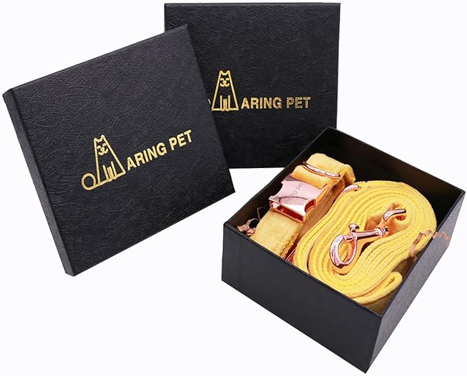 ARING PET Velvet Dog Collar and Leash Set, Bright Yellow Dog Collar and Leash, Adjustable Soft Collars for Dogs