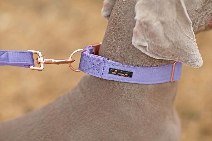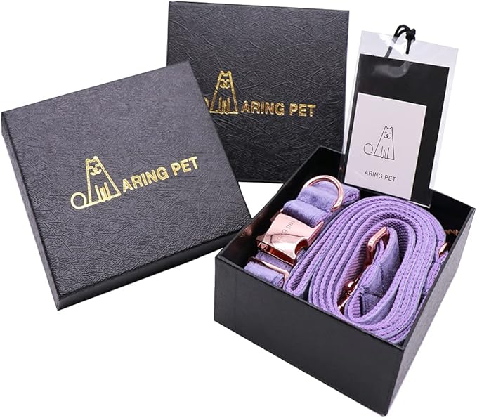 ARING PET Velvet Dog Collar and Leash Set, Soft Purple Dog Collar and Leash, Adjustable Collars for Dogs