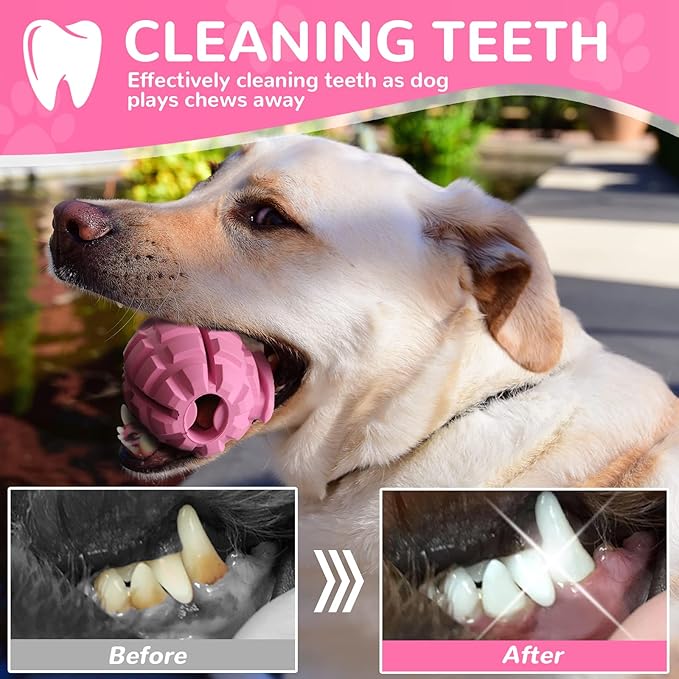 Dog Toys for Aggressive Chewers Large Breed, for German Shepherd, Indestructible Interactive Treat Dog Toys for Large Medium Breeds, Food Grade & Tough Rubber, Fun to Chew, Chase and Fetch (Pink)