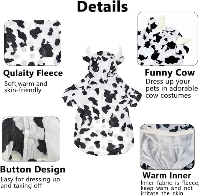 FLAdorepet Halloween Dog Cow Costume Outfits for Small Medium Large Dog Winter Fleece Puppy Jacket Coat Hoodie Funny Dog Clothes Golden Retriever (White, L)