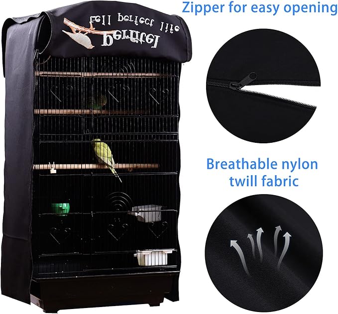 Bird Cage Cover(Black) Good Night Birdcage Cover Black-Out Birdcage Cover Durable Breathable Washable Material… (18.1Lx14.1Wx36H)