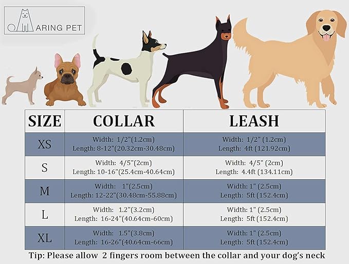 • SIZE: We highly recommend measuring your dog to ensure an accurate fit. Please measure dog's neck and leave 2 fingers between collar and your dogs