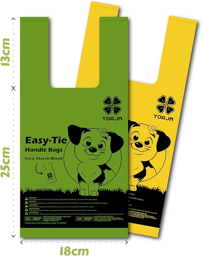 YORJA Tie Handles Dog Poop Bags, 440 Pet Waste Bags, Thick and Strong 100% Leak-Proof Easy Tie Up Doggy Bags
