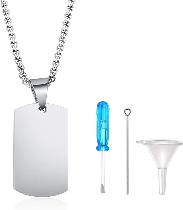 - *TAG URN NECKLACE:Memorial Ashes Pendant Urn Necklace,is a beautiful, touchable reminder of your loved one.The cylinder holds human ashes or pet ashes, and the Oval Charm can be personalized with a name or date on one side.