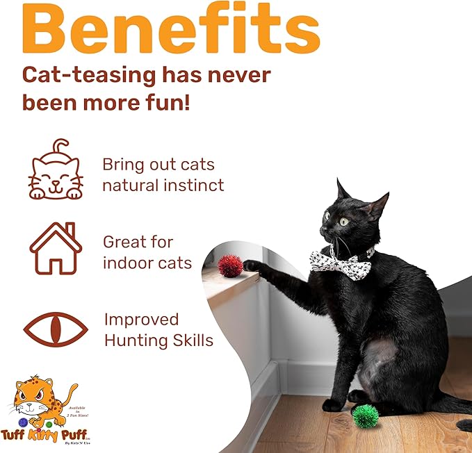 Tuff Kitty Puff Kats' N Us Cat Toy - Mini Size 1 Inch - Sparkle Ball Cat Toys - Glitter Assorted Colors (Pack of 6)