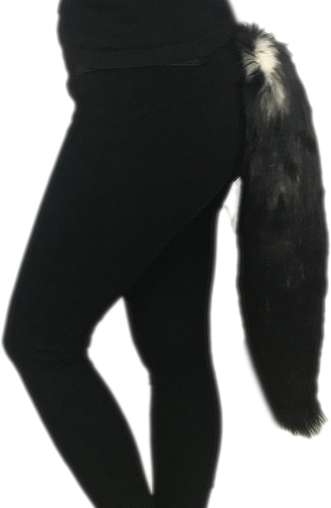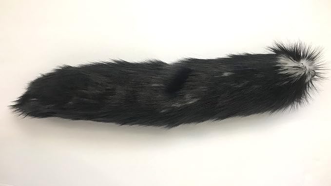 Handmade Faux Fur Tail, Luxury Animal Super Soft Costume Accessory, Pet Play, Halloween (30", Candy Black Wolf)