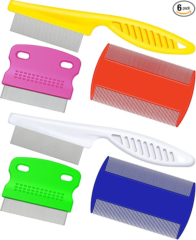 6 Pieces Pet Lice Combs Dog Grooming Flea Cat Tear Stain Comb for Removal Dandruff, Hair Stain, Nit(White, Yellow, Green, Purple, Orange, Dark Blue)