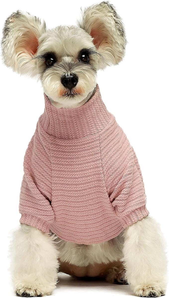 Fitwarm Turtleneck Knitted Dog Sweater Puppy Pajamas Thermal Doggie Winter Clothes Knitwear Pet Coats Cat Apparel Pink Medium