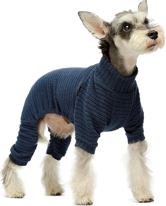 Fitwarm Turtleneck Knitted Dog Sweater Puppy Pajamas Thermal Doggie Winter Clothes Knitwear Pet Coats Cat Apparel Blue X-Small